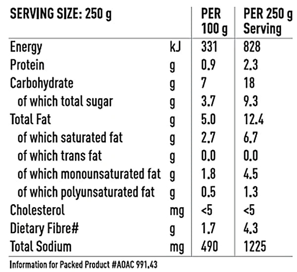 Water, Fresh Tomatoes (26%) [Tomatoes, Tomato Juice, Citric Acid], Fresh Cream, Fresh Onion, Fresh Sweet Pepper, Vegetable Oil (Canola Seed) [Antioxidant: Vitamin E], Sugar, Salt, Corn Starch, Fresh Basil, Vinegar, Fresh Garlic, Flavouring, Herbs, Spices (Radurised), Yeast Extrac