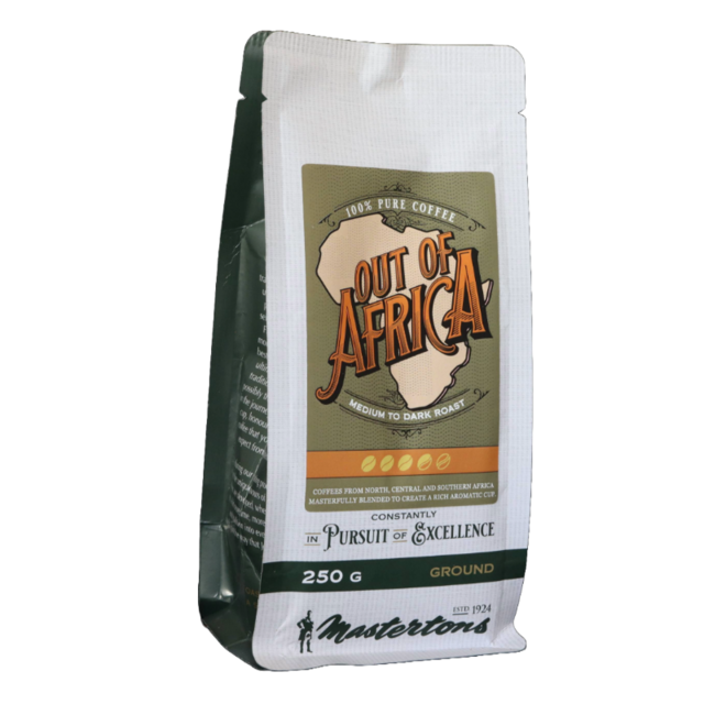 As the name suggests, Out of Africa comprises coffees from North, Central and Southern Africa blended to produce a rich aromatic cup with a faintly chocolaty character. This chocolaty flavour is produced by the addition of Ethiopian and dark-roast beans. A great after-dinner blend!