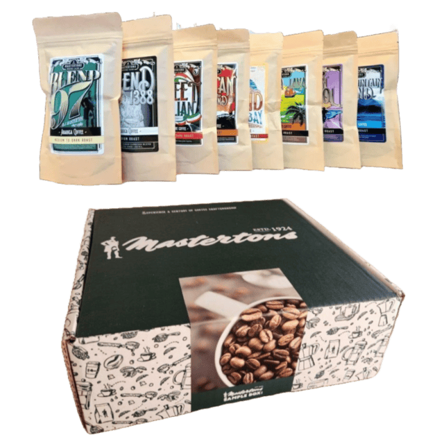 Looking to experience a selection of our coffee blends with unique flavour profiles and intensities? Look no further than our Mastertons Variety Gift Box with 8 x 70g of traditionally hand-roasted Mastertons Coffees. Whether you prefer a bold, full-bodied roast or a milder, more delicate blend, our assortment has something for everyone. Explore flavours such as rich chocolate notes, smooth caramel, bright citrus, and more.