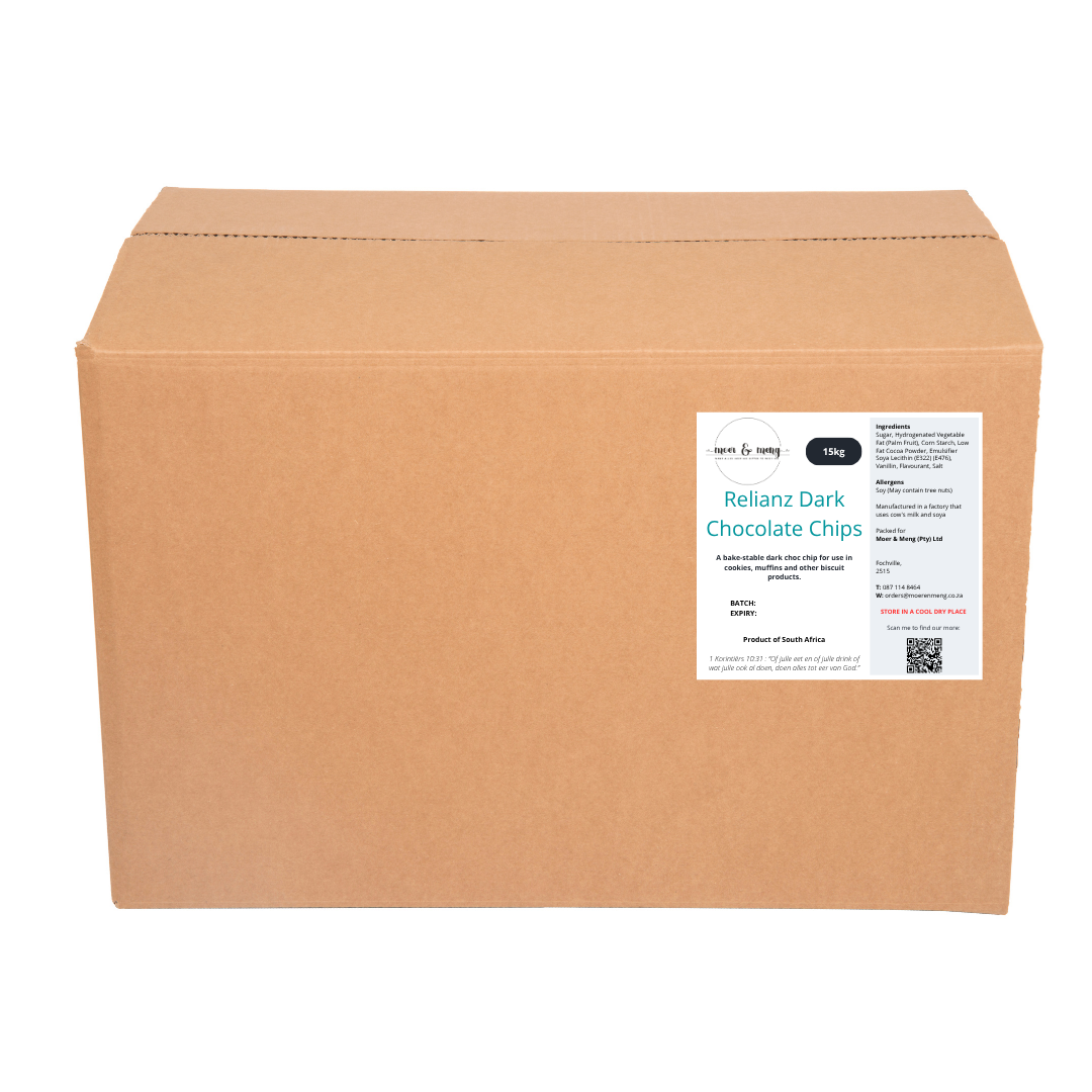 A bake-stable dark choc chip for use in cookies, muffins and other biscuit products.